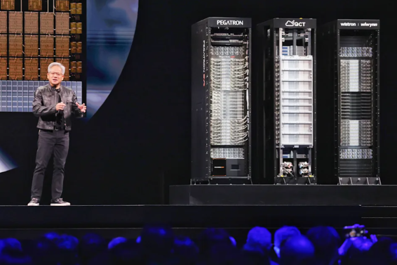在最近的一次播客节目中,当被问及定制芯片带来的竞争威胁时,英伟达首席执行官黄仁勋对此表示了否认,他表示,英伟达不仅仅是一家人工智能芯片制造商,它提供的是全套服务器系统,而不仅仅是单个GPU。在很多情况下,英伟达的客户只是在构建单个芯片,而英伟达则设计了大型服务器机架,其中包含多种自主研发的芯片,从Blackwell GPU到基于Arm的中央处理器(CPU),以及允许芯片之间相互通信的网络产品。