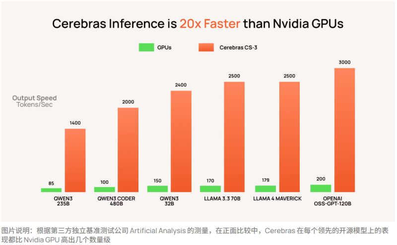 然而,尽管英伟达的主导地位似乎不可动摇,但一个挑战者正在出现。初创公司Cerebras大胆宣称,其芯片能够以比英伟达硬件快20倍的速度驱动AI模型。投资者不禁要问,英伟达的统治地位最终是否会面临一个强有力的竞争对手?