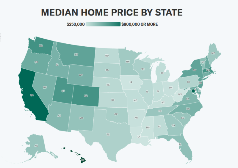 各州的房价因城市、县和社区而异。不过,这些中位数应该能让你对购房情况有个大致的了解。