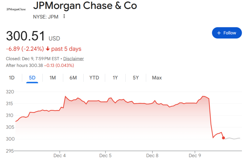 摩根大通股价高位大跳水!烧钱太狠惹祸?